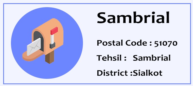 Sambrial is tehsil of Sialkot in Punjab Pakistan . Sambrial postal code 51070 , exclusively designed for efficient post office deliveries.